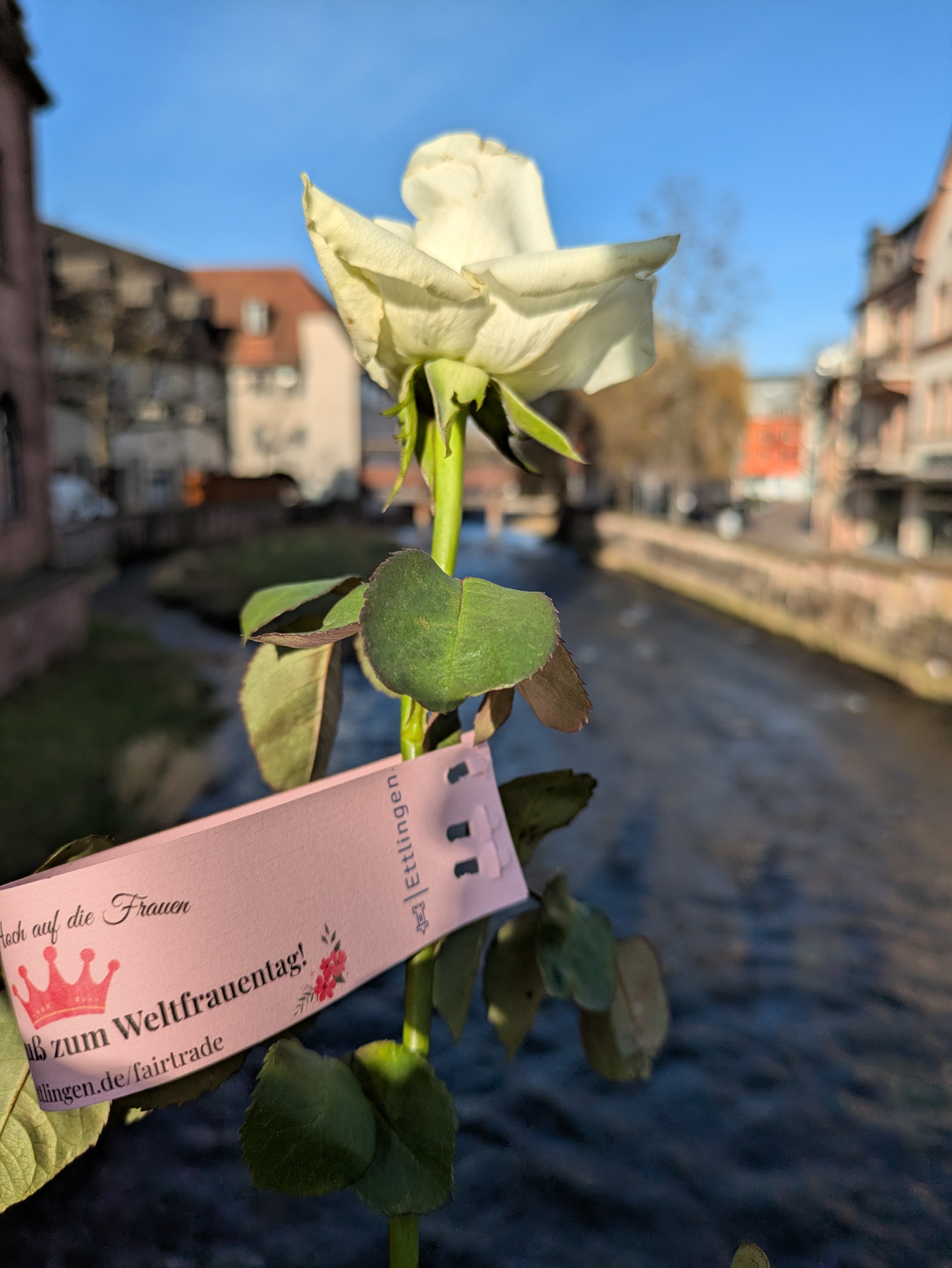 Am 8. März veranstaltet das Stadtmarketing anlässlich des internationalen Weltfrauentags eine Rosenaktion. Jede Frau erhält eine fair gehandelte Rose als Gruß - entweder bei der Touristinformation, beim Weltladen oder nachmittags auf dem Schlossplatz.