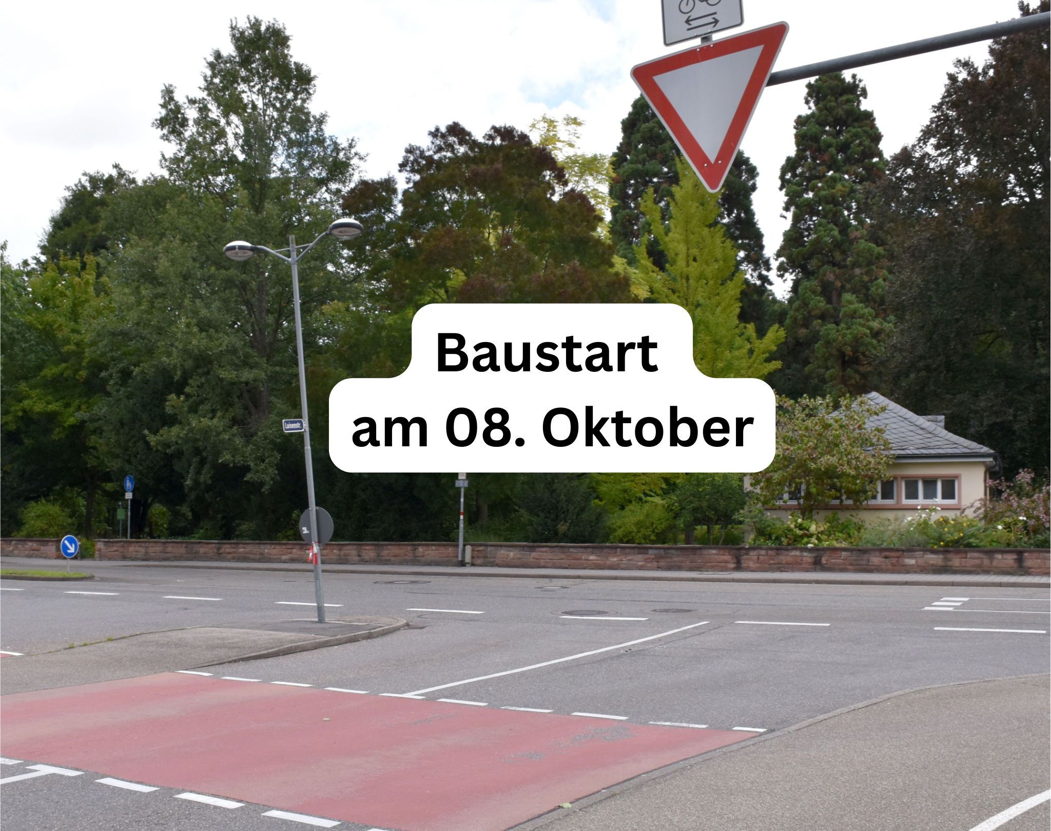 Der Bau des Kreisels an der Einmündung der Luisen- in die Pforzheimer Straße hat begonnen. Der Baustart, geplant für 22. September, musste verschoben werden, weil Betonleitelemente nicht rechtzeitig geliefert werden konnten.
