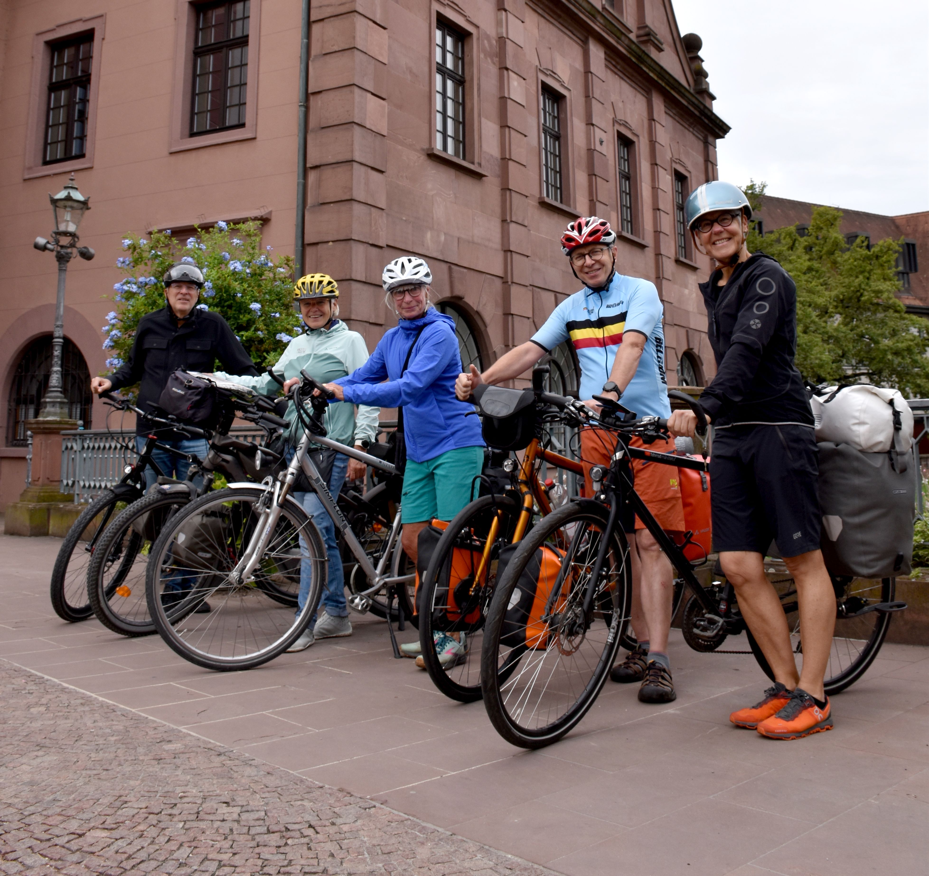 Voller Vorfreude und Tatendrang präsentierten sich am Mittwoch vergangener Woche die fünf Radlerinnen und Radler stellvertretend für die gesamte Gruppe, die aus acht Personen besteht. Zu sehen sind (von links)