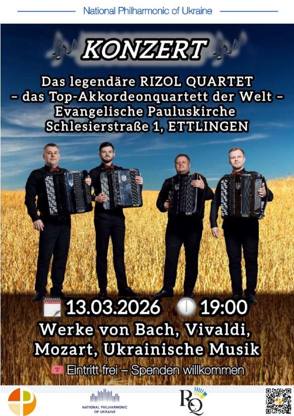 Das Rizol Quartett begeistert sein Publikum weltweit und hat bereits in zahlreichen Städten der Ukraine, Polens, Italiens, der Schweiz, Deutschlands, Südkoreas und vieler weiterer Länder unvergessliche Eindrücke hinterlassen.