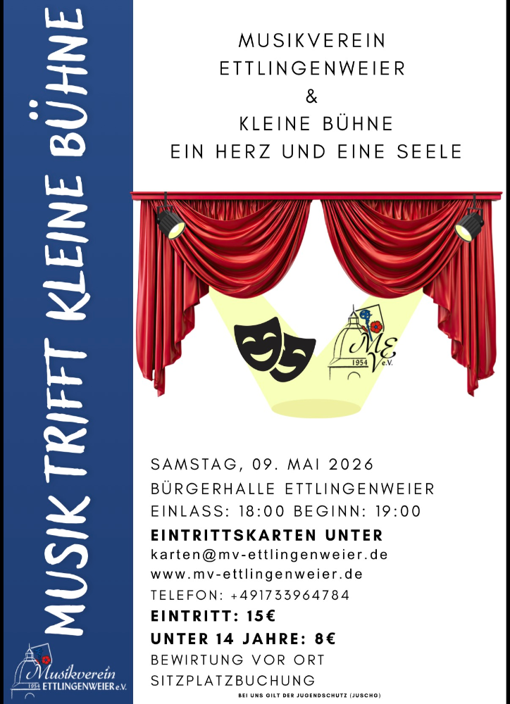 Freuen Sie sich auf die „kleine bühne Ettlingen“, die musikalische Begleitung des Musikvereins Ettlingenweier sowie eine Tanzeinlage der GroKaGe. Für das leibliche Wohl sorgt der Fußballverein Ettlingenweier.